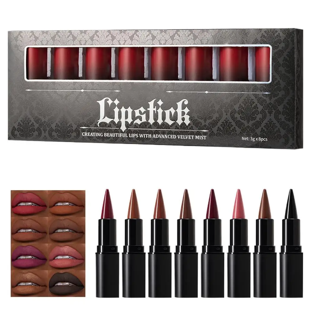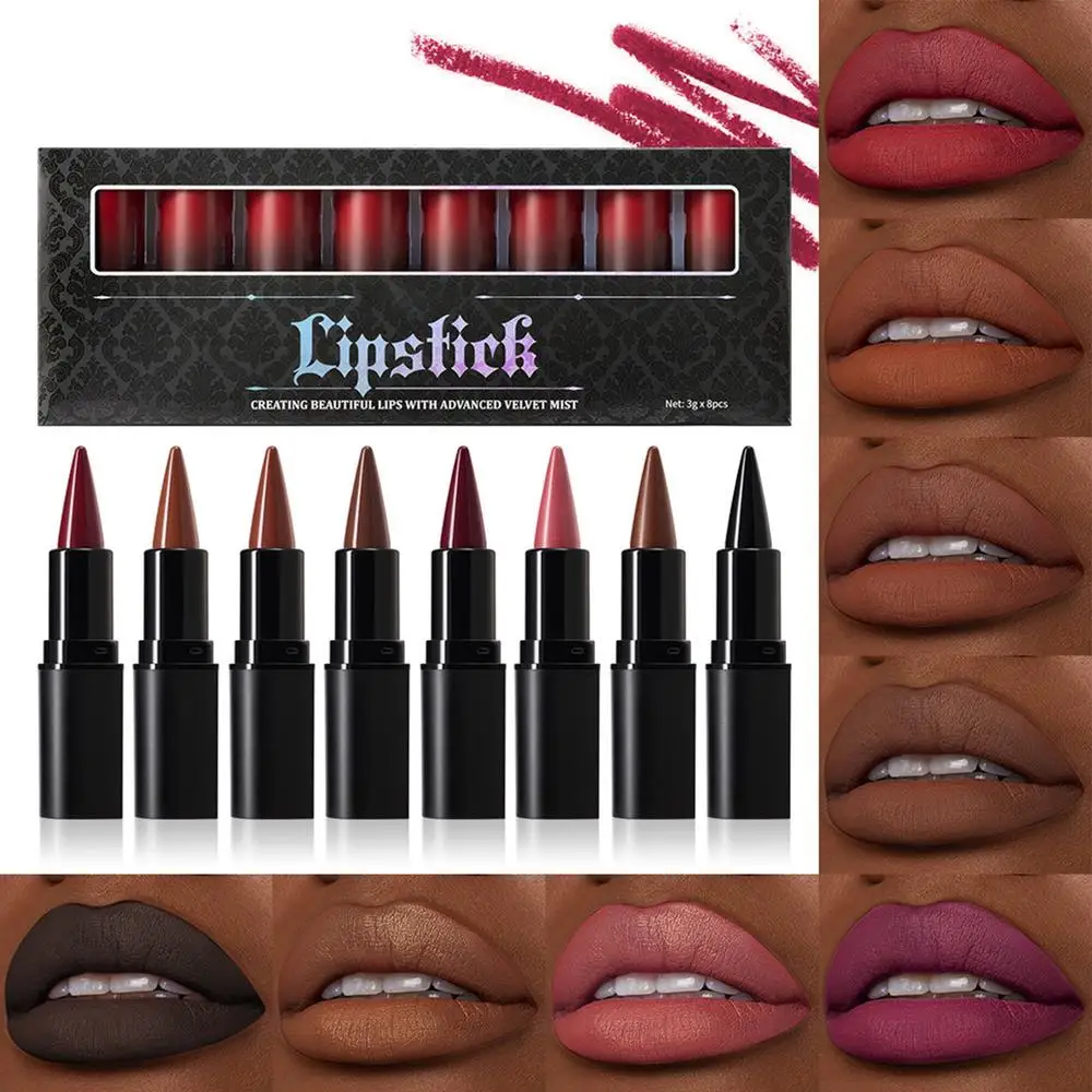 8pcs Tapered Gradient Lip Liner Matte Brown Redd Velvet Lipstick Nude Brown Lip Liner Pencil Kit Red Contour Tint Labial Makeup - set / CZECH REPUBLIC