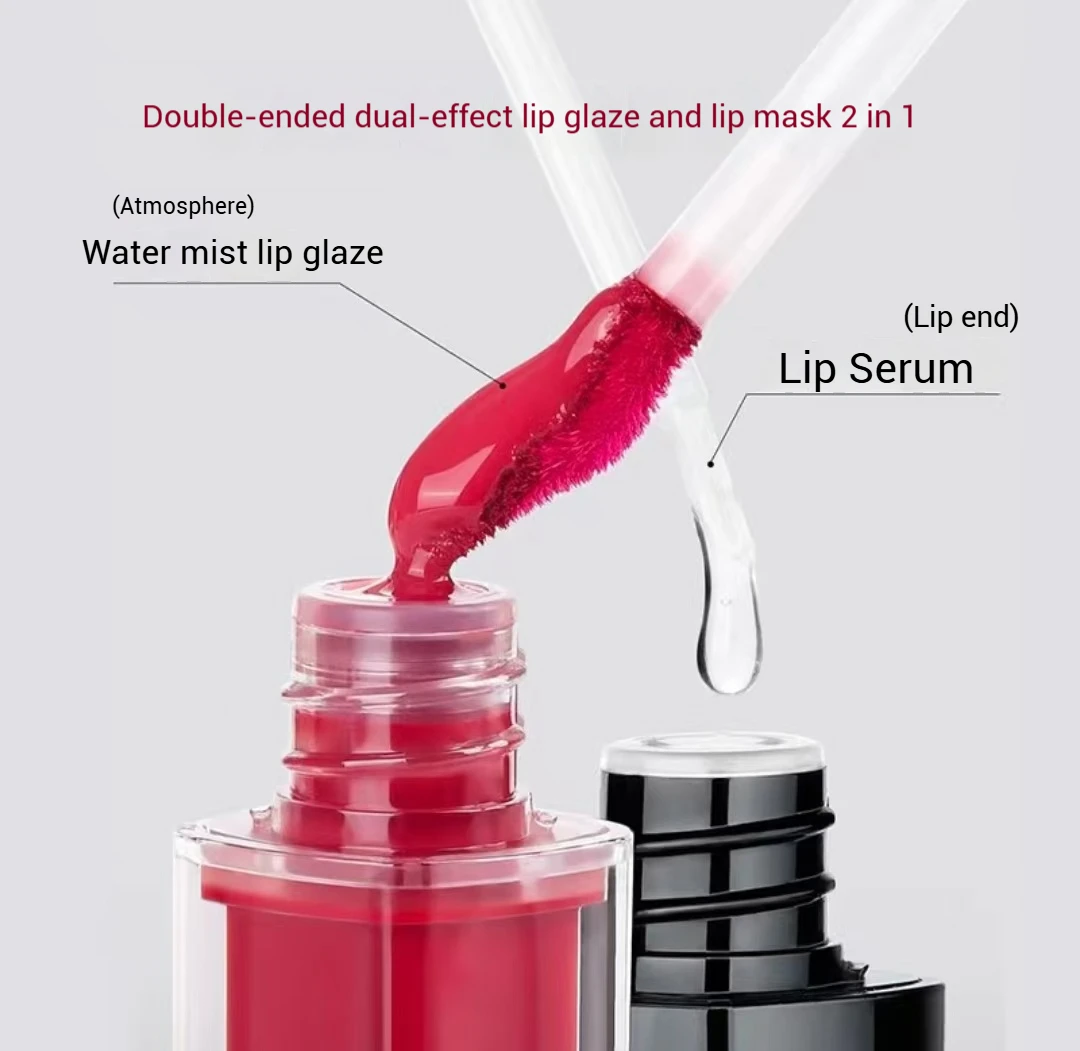Achieve a perfect pout with just one product - our Mooekiss Double-ended Lipstick combines the benefits of a lip glaze, lip mask, water mist lip gloss, and water gloss mirror finish in one convenient package, making it a must-have for busy individuals looking to streamline their beauty routine.