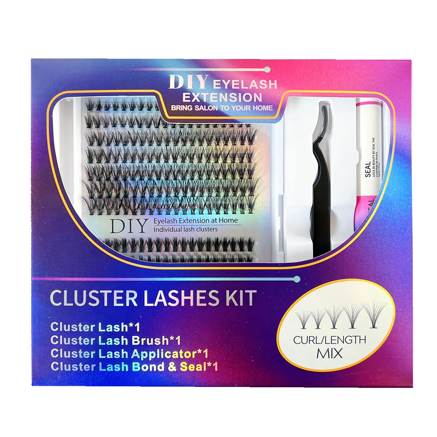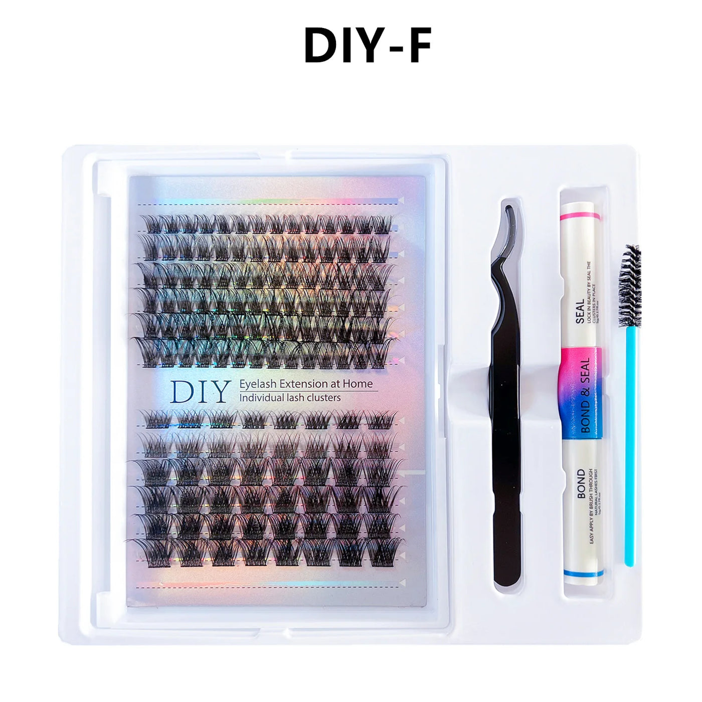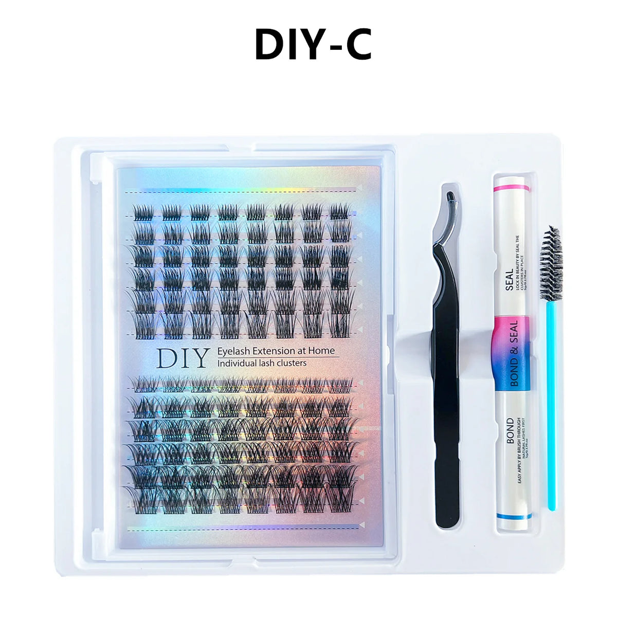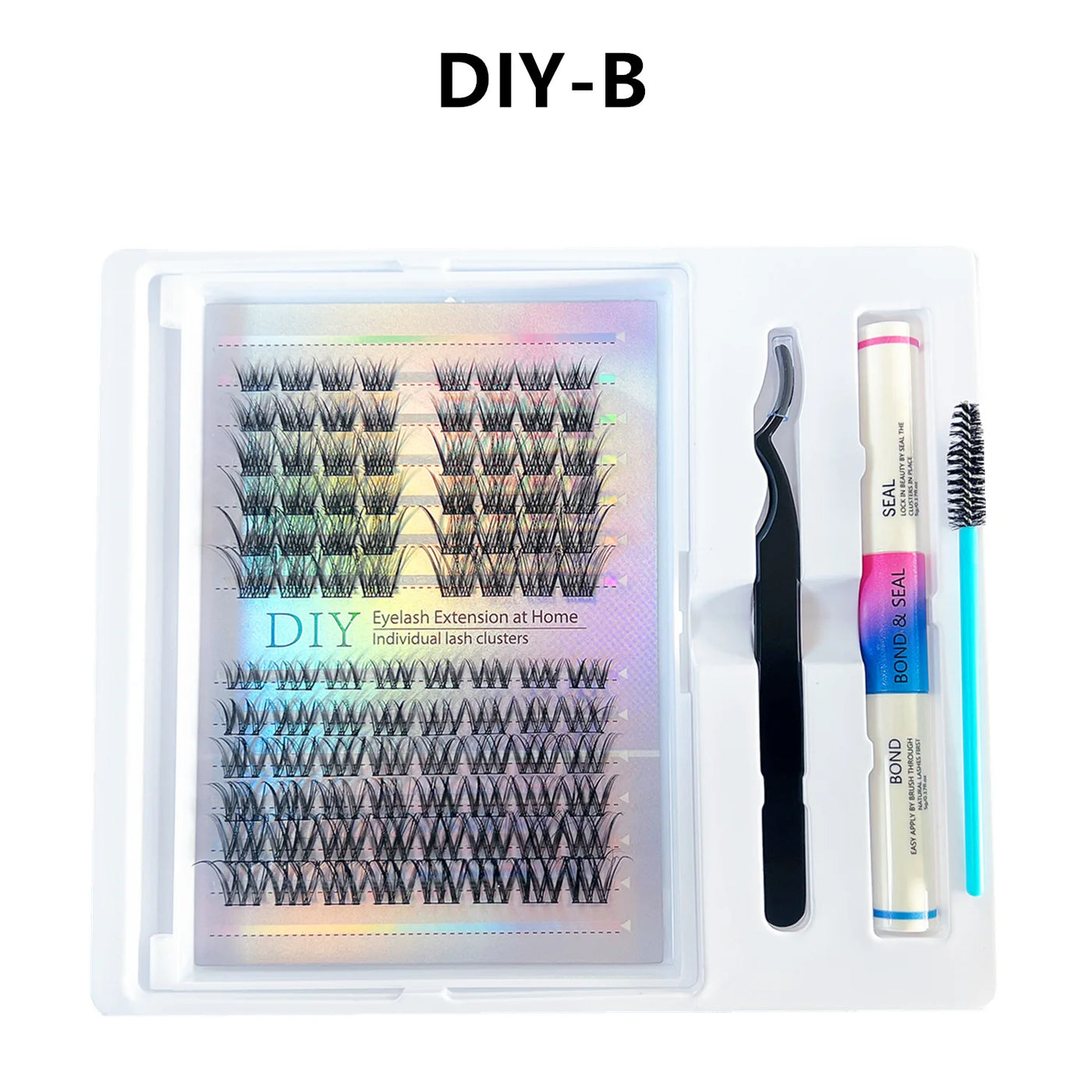 Inform when this item available DIY 280 Cluster False Eyelash Extensions Kit Natural Soft Segmented Self grafting Lashes Bond and Seal Glue Brush Makeup Tools
