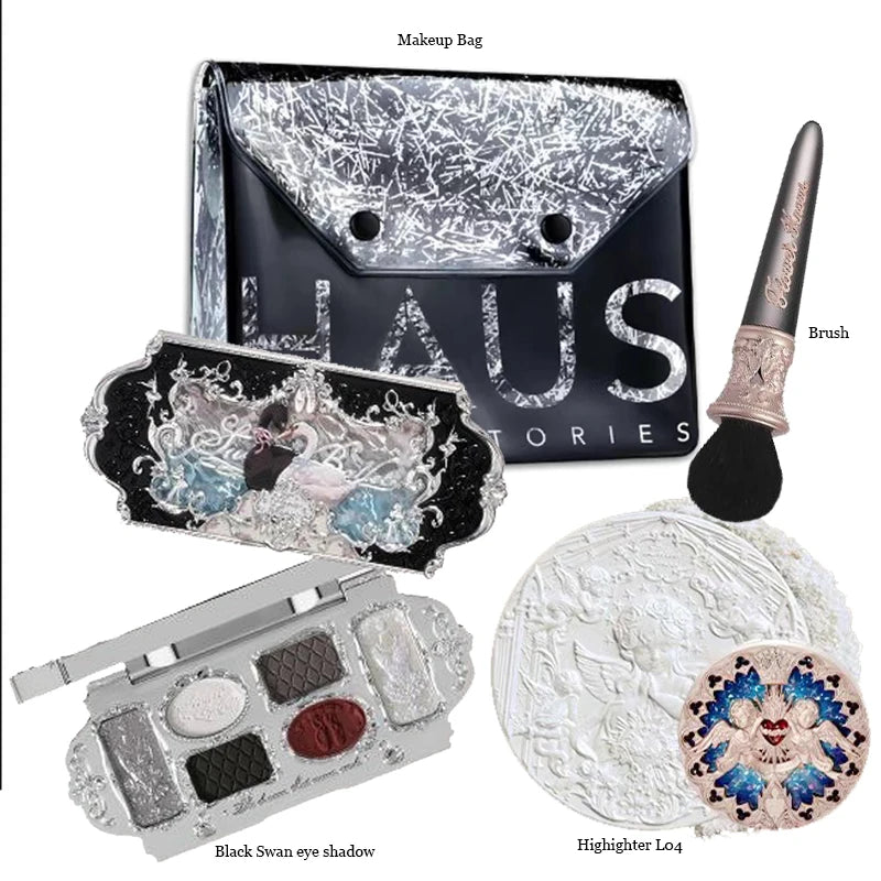 Flower Knows Make Up Kit Cosmetics Full Set Strawberry Rococo Eyeshadow Palette Little Angel Highlighter Matte Lipstick 4Pcs Kit - Blackcurrant Set