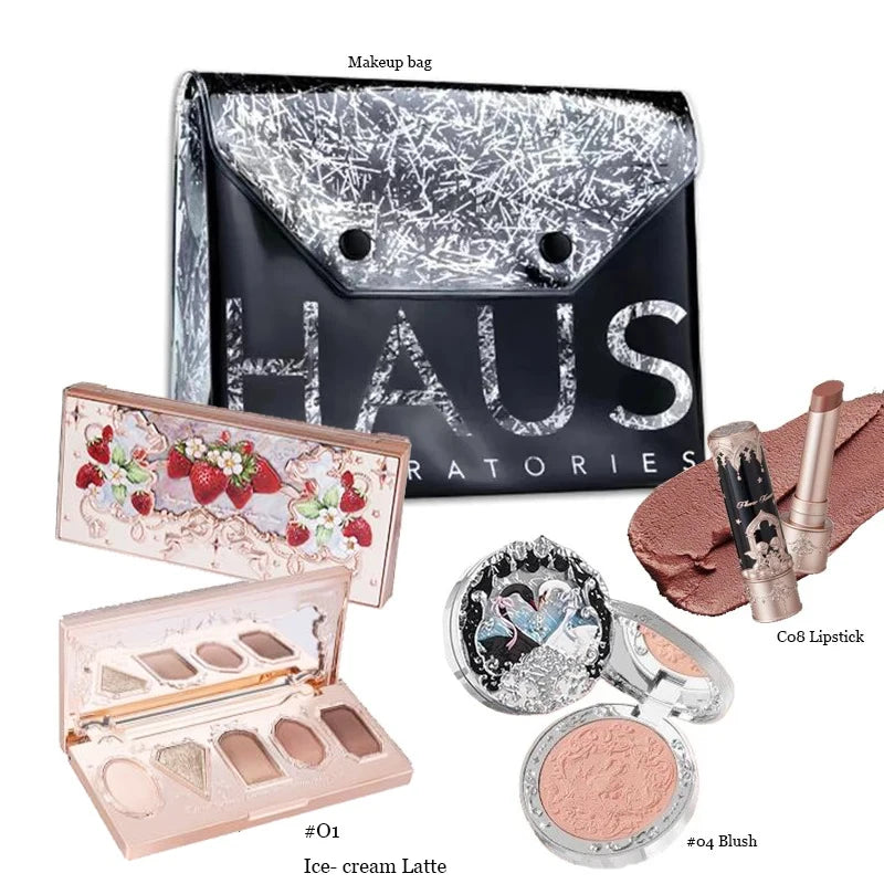 Flower Knows Make Up Kit Cosmetics Full Set Strawberry Rococo Eyeshadow Palette Little Angel Highlighter Matte Lipstick 4Pcs Kit