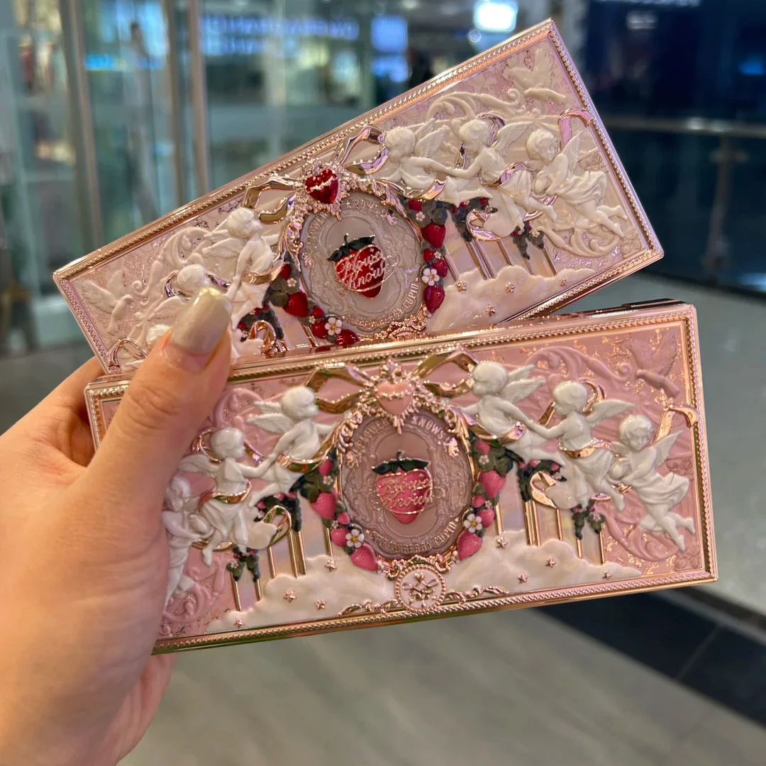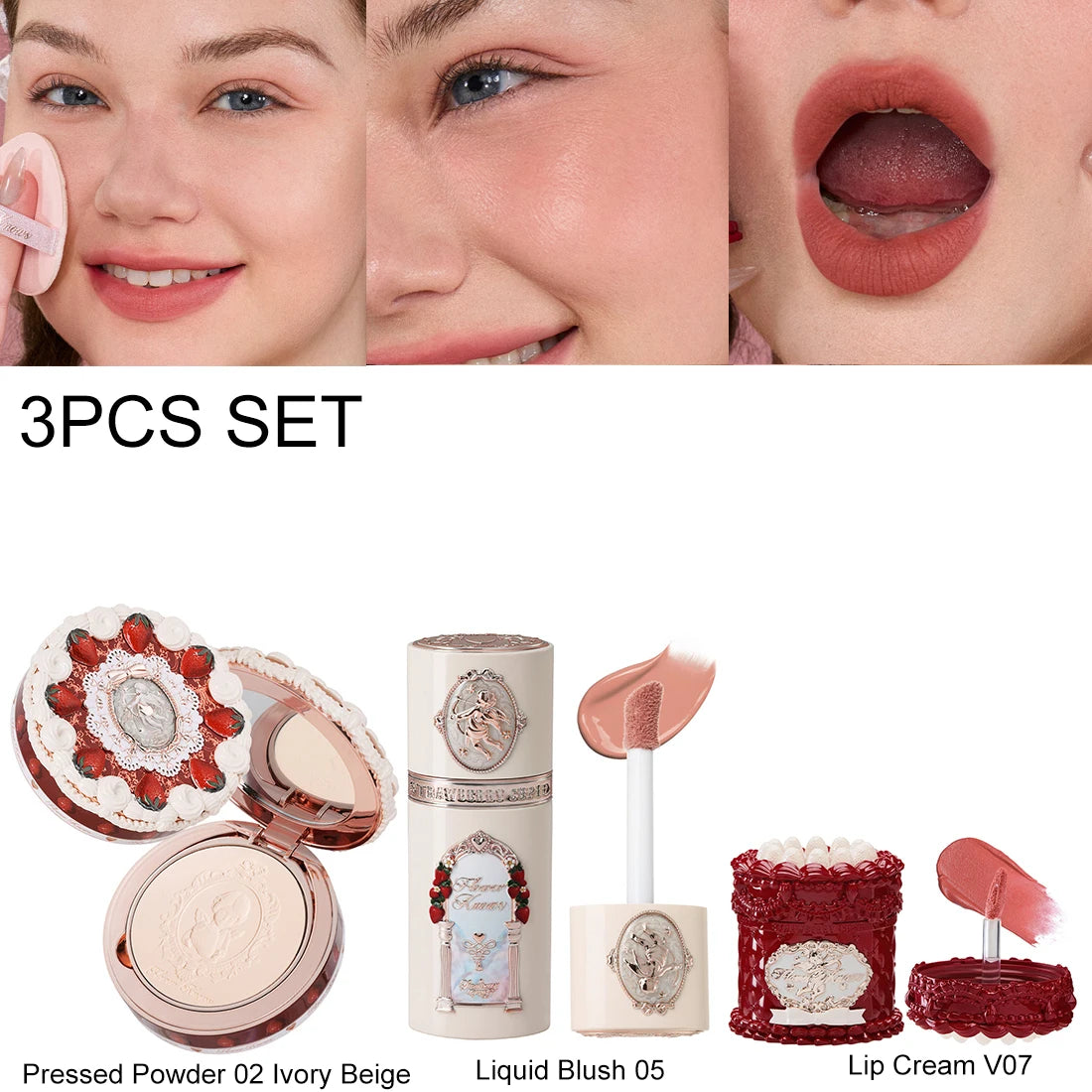 Inform when this item available Flower Knows Strawberry Cupid Velvet Matte Lip Cream Pressed Powder Liquid Blush Set Long Lasting Lightweight Makeup