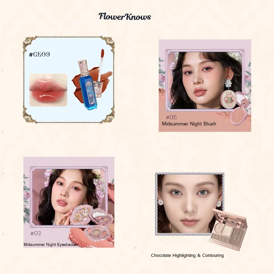 Flower Knows Make Up Sets Cosmetics Full Set Gift Box Makeup Kit Lip Glaze Matte Blush Powder Eye Shadow Highlighter Contour