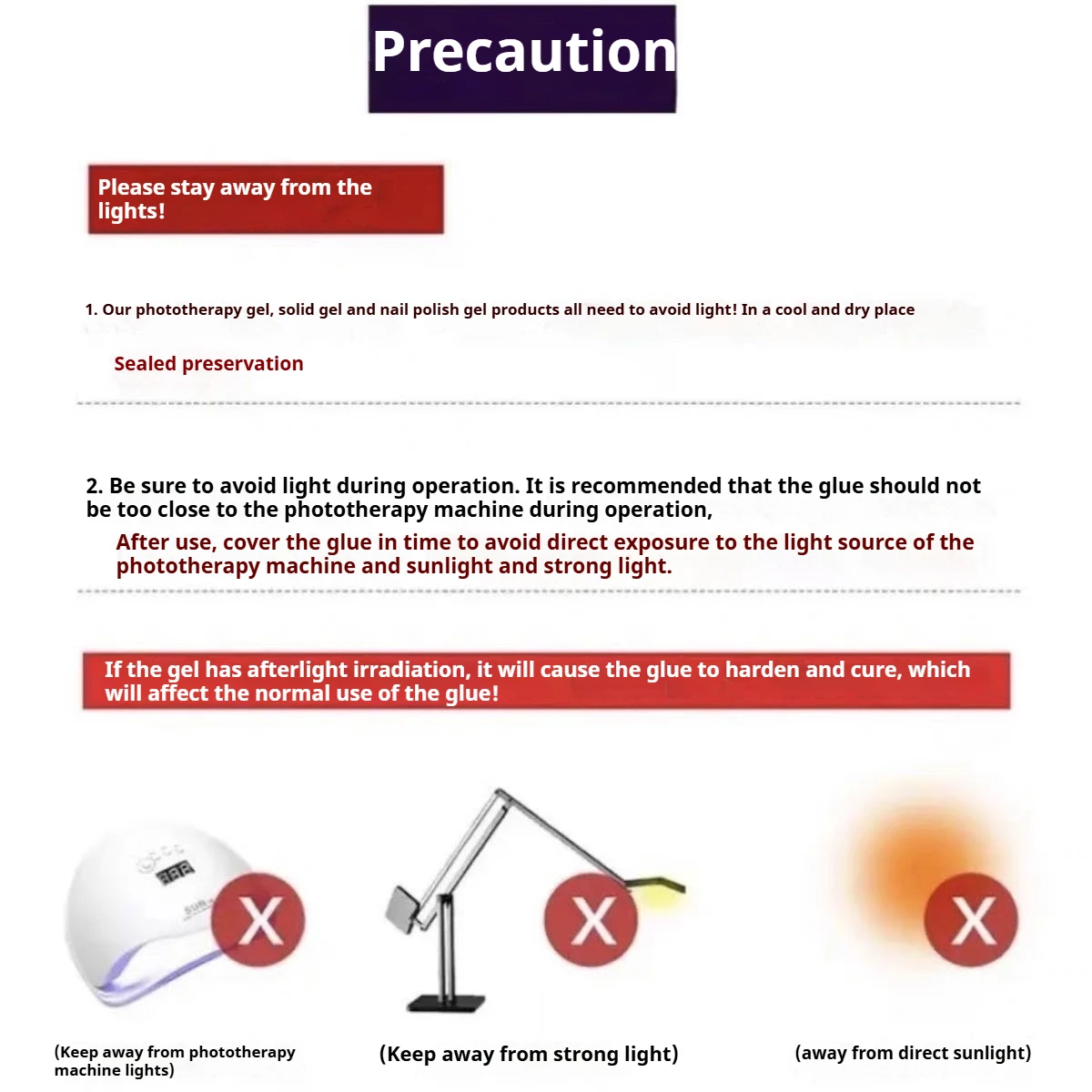 Attention: After using the gel, it is necessary to light it up for a longer period of time because it is a high concentration paint gel with a high concentration of color paste