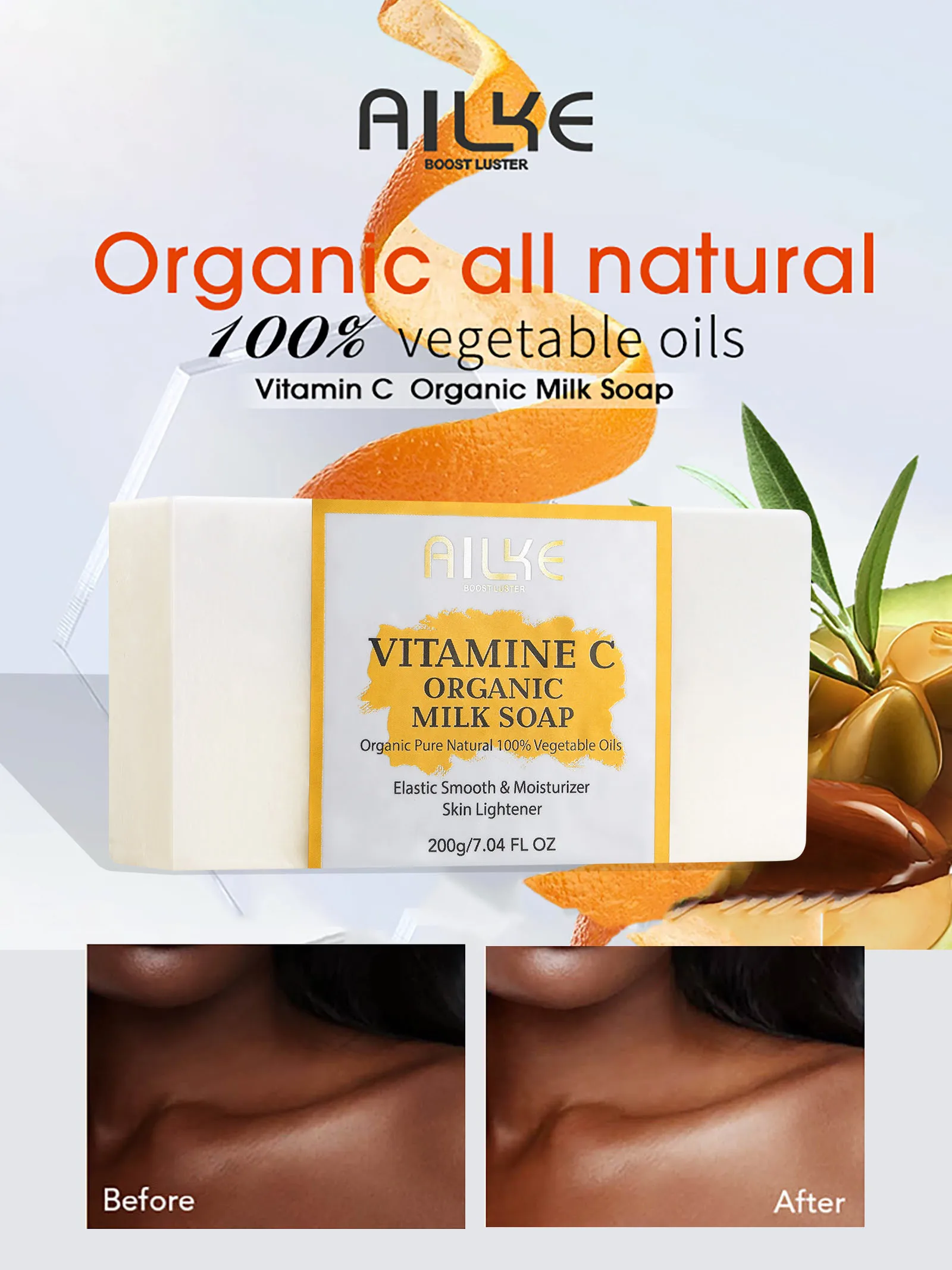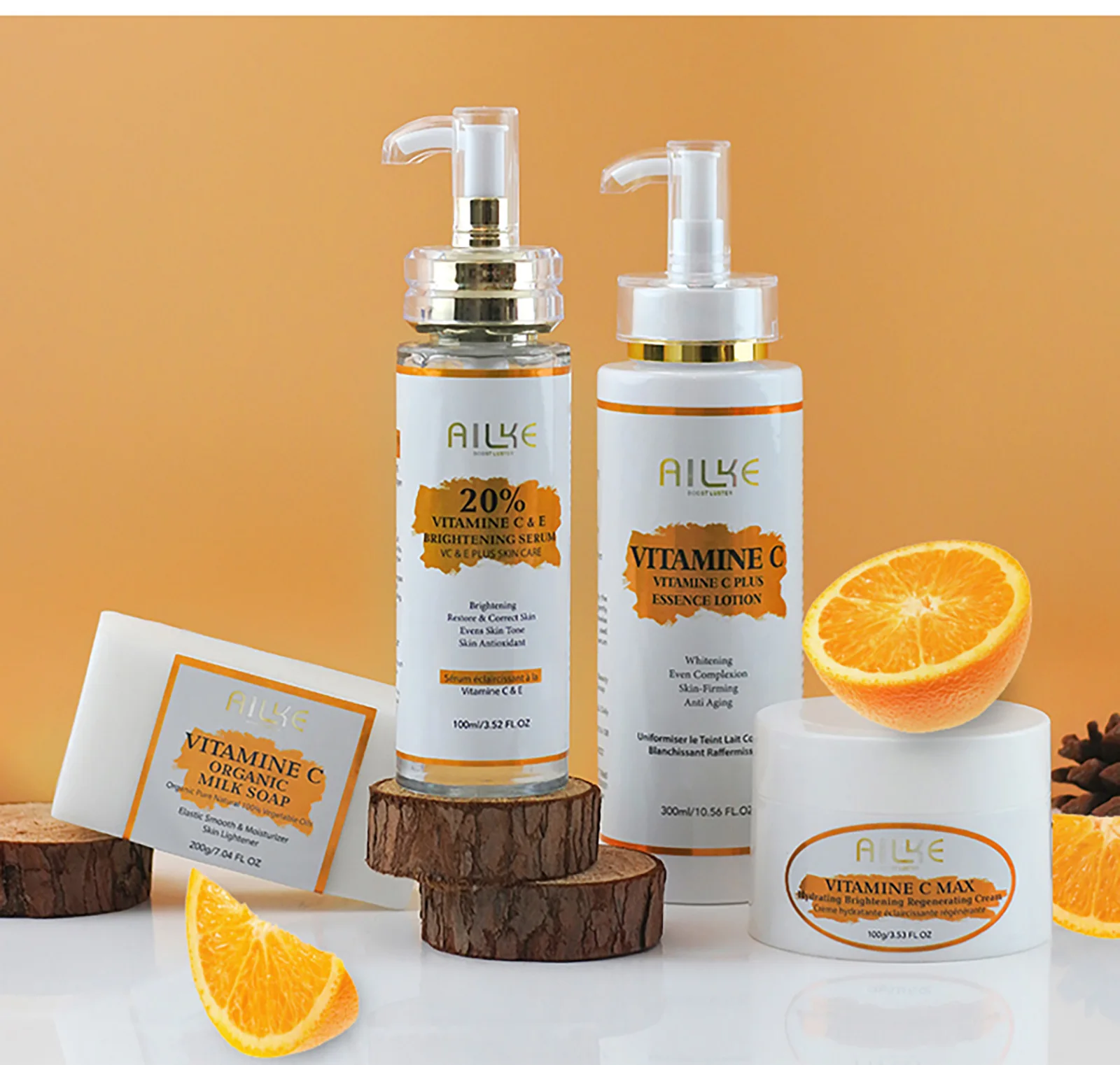 Ailke Vitamin C Rejuvenating Brightening Moisturizing Cream, containing collagen and niacinamide, anti-aging, smoothing skin - Soap 200g / france