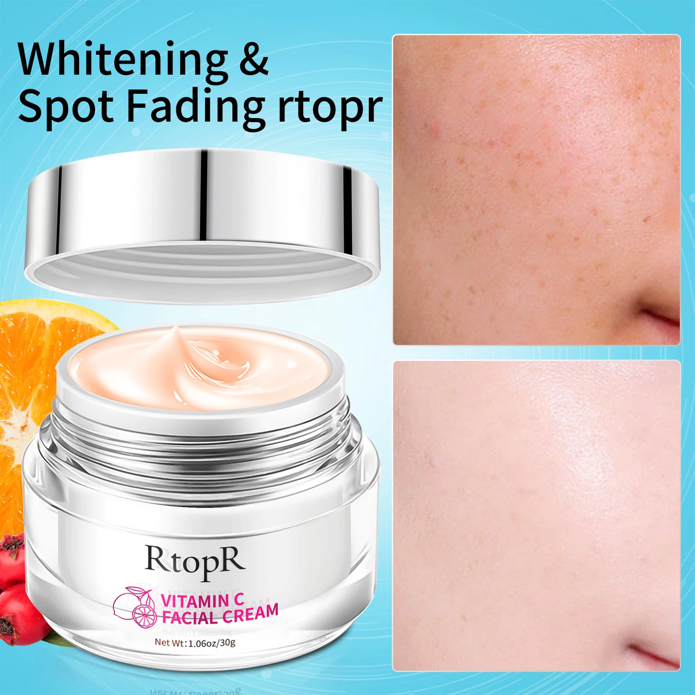 RtopR Vitamin C Face Cream Whitening Brightening Gentle Nourishing Moisturizing Melanin Reduction Fine Lines Rejuvenating Skin - CHINA