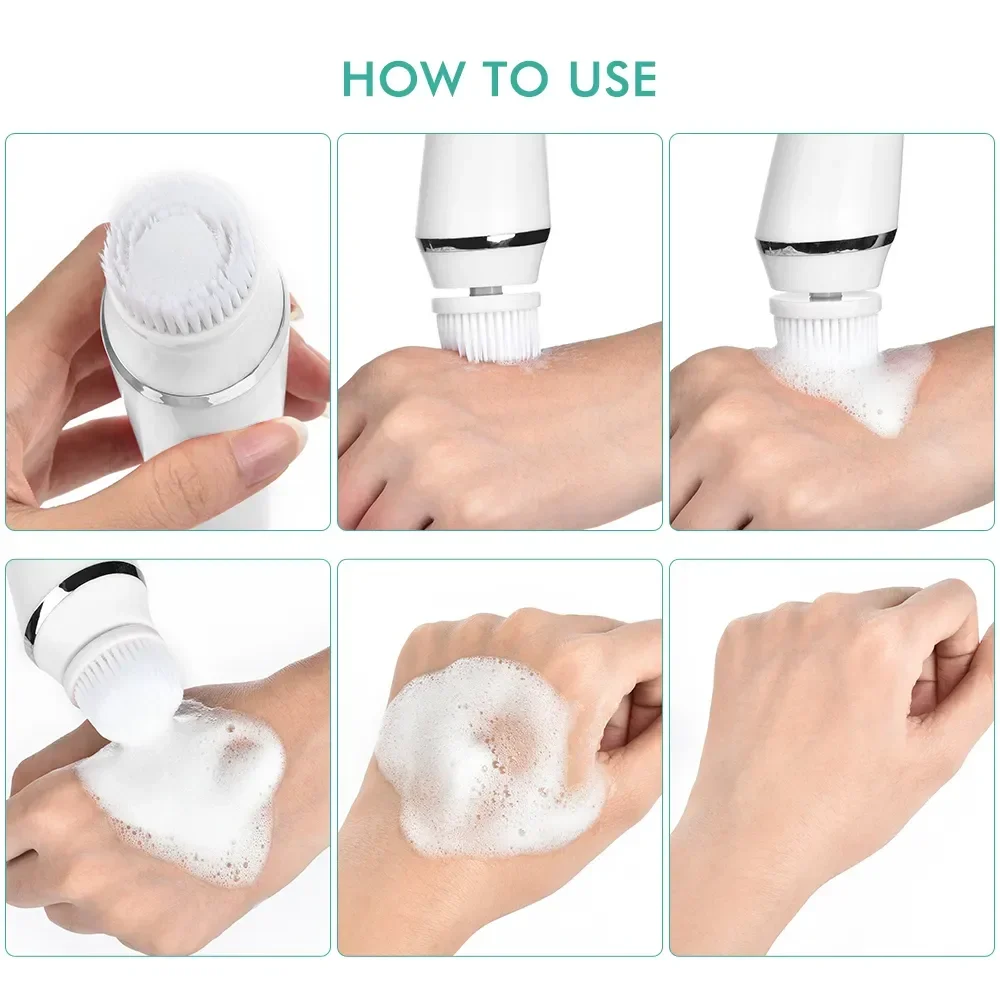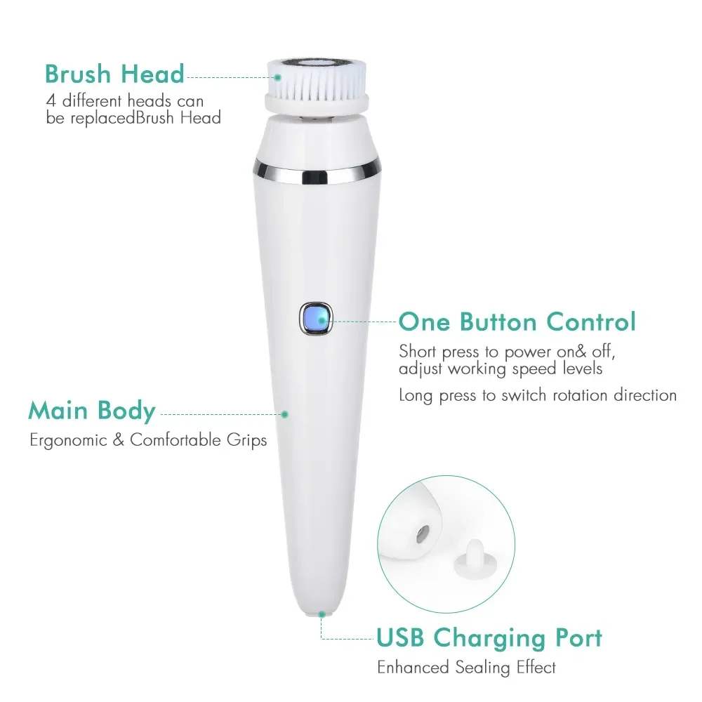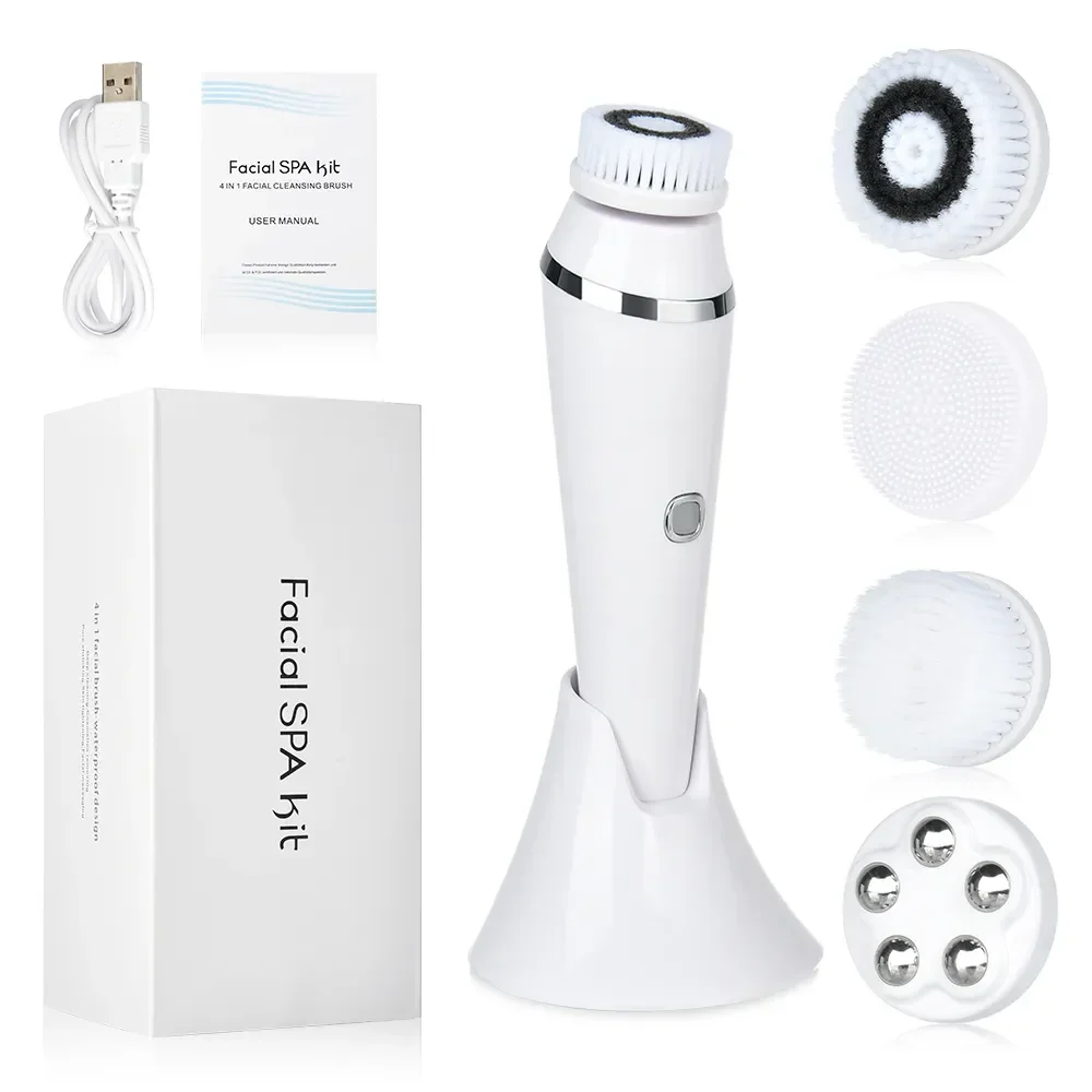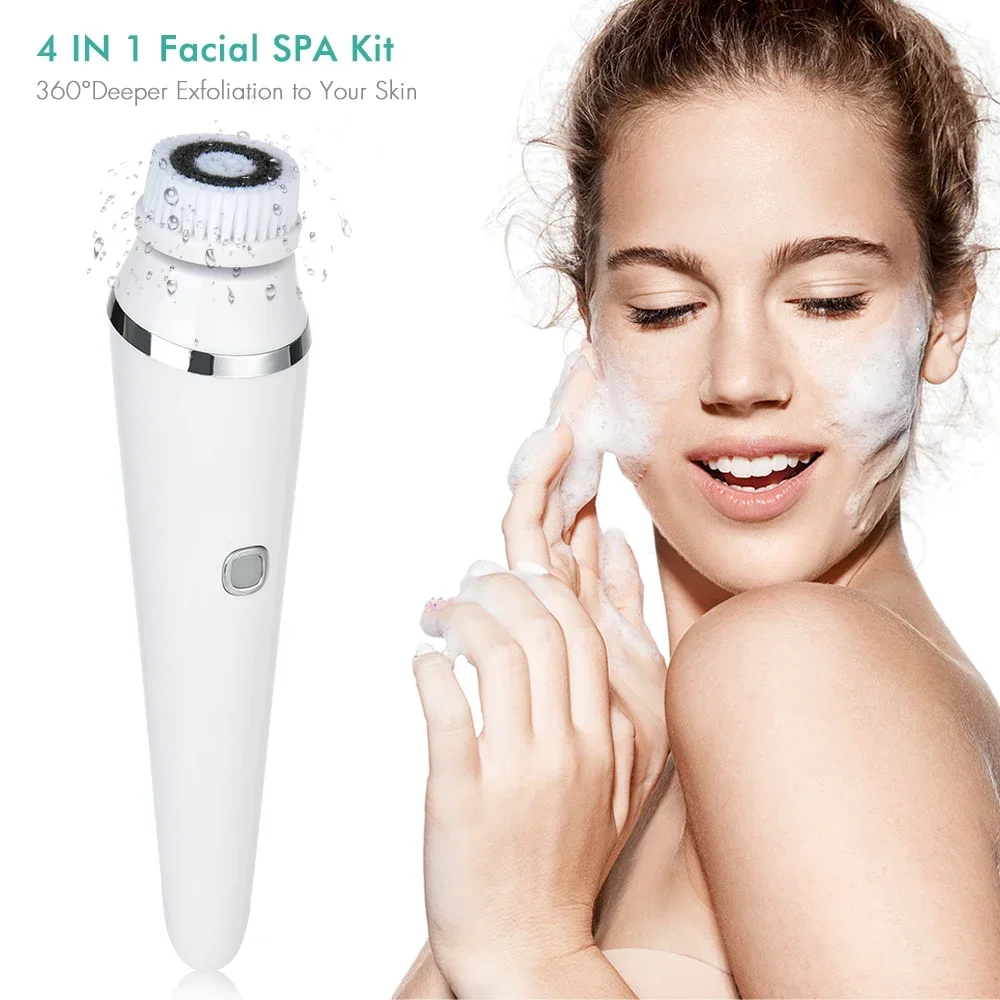 4 in 1 Electric Clean Facial Brush Face Tightening Exfoliating Cleansing Sonic Massager Cleaner with 4 Heads Kit face Skin Care