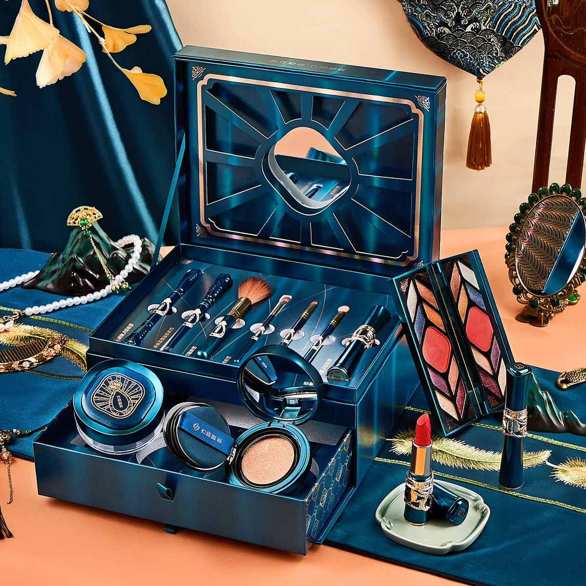 12pcs Makeup Cosmetic Set Lipstick Eye Shadow Mascara Gift Box Face Powder Air Cushion BB Cream Eyeliner Makeup Cosmetic
