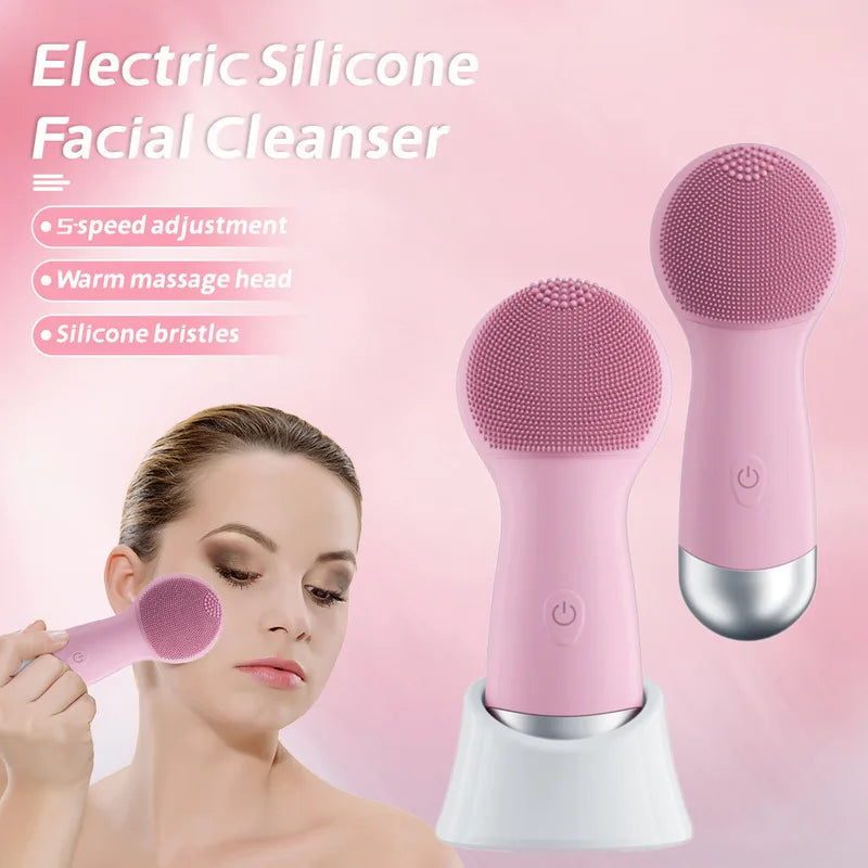 Electric Silicone Pore Cleaner Face Washing Device Household Sonic Facial Cleanser Ultrasonic Vibration Facial Cleansing Brushes