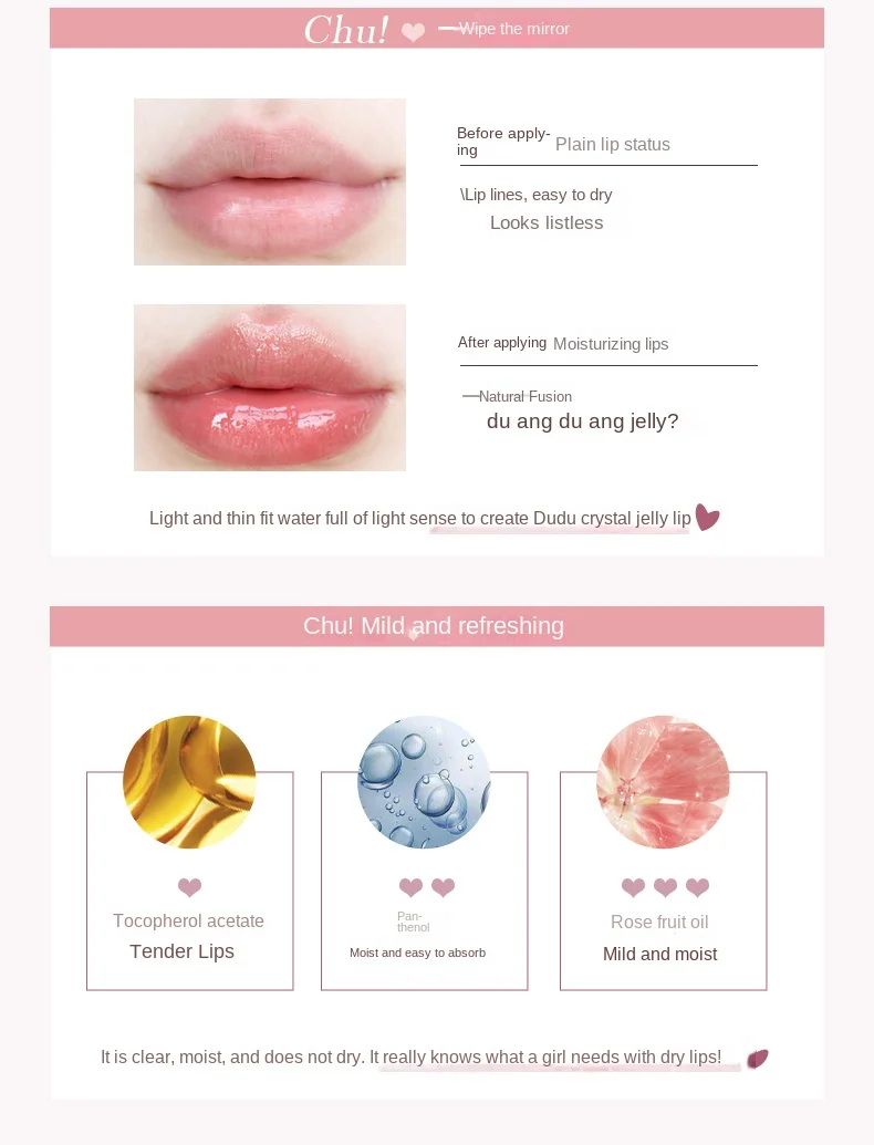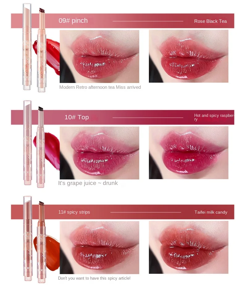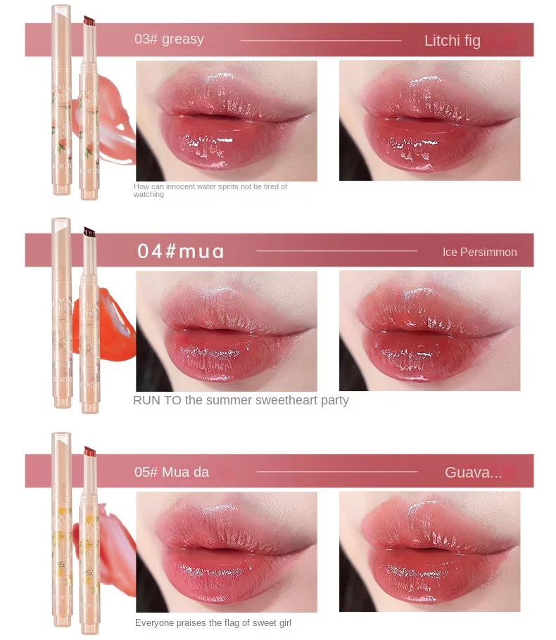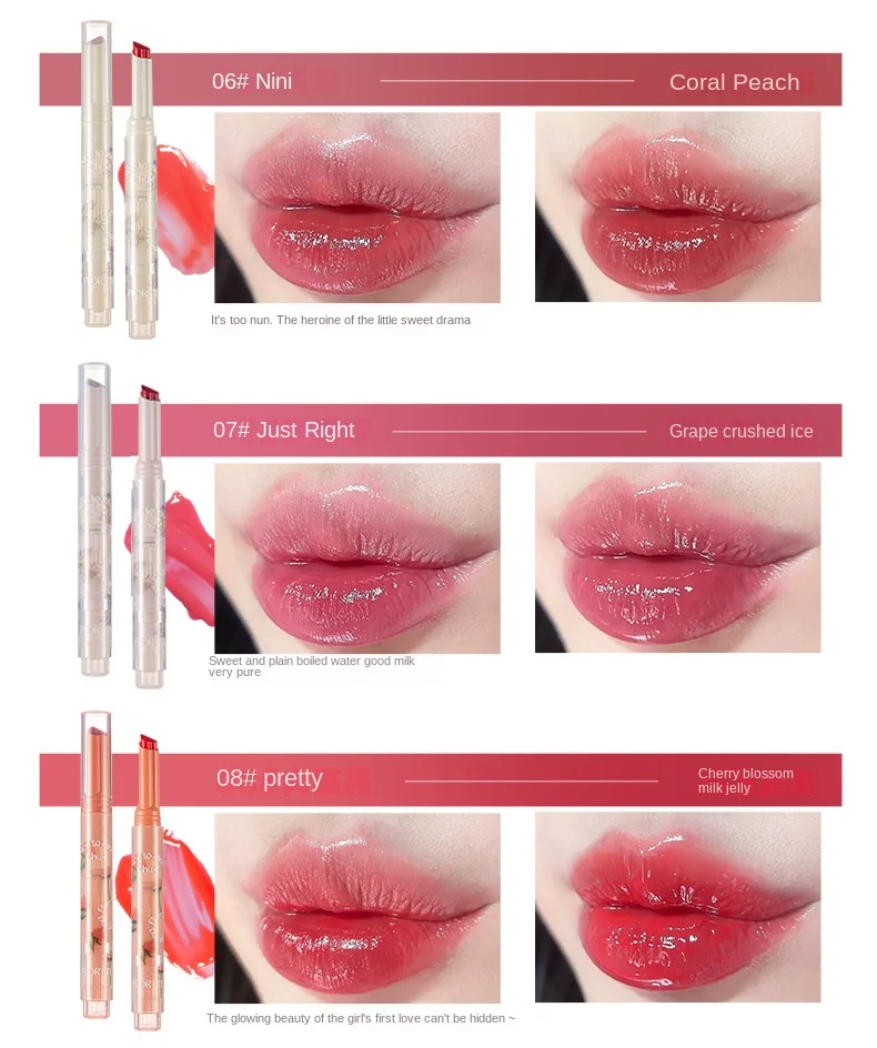 FLORTTE First Kiss Love Lipstick Pencil Lip Balm Mirror Shine Lip Glaze Lip Stick Korean Makeup Lipgloss - 001