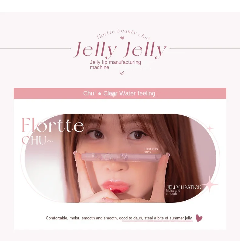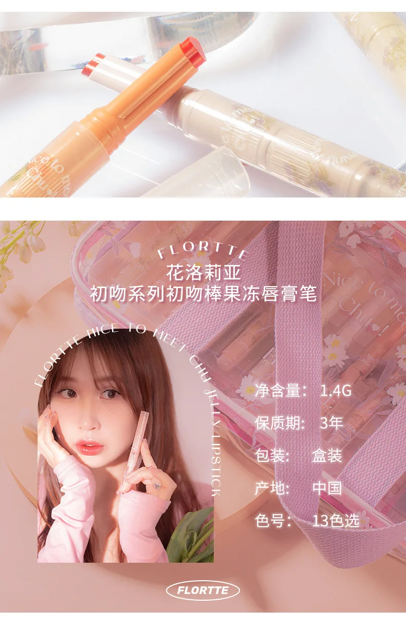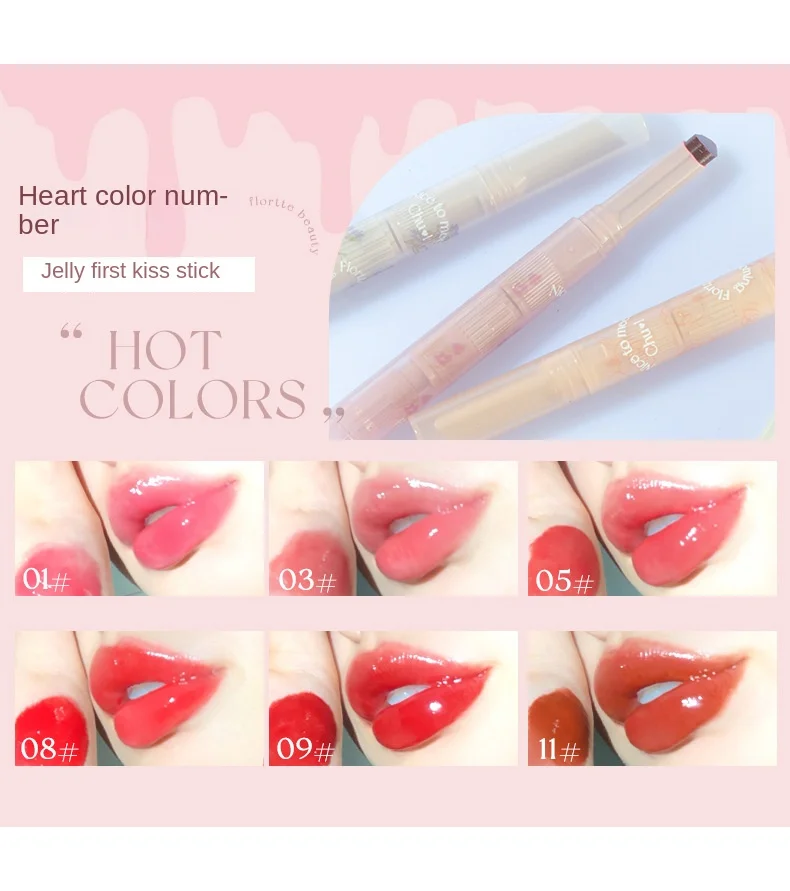 FLORTTE First Kiss Love Lipstick Pencil Lip Balm Mirror Shine Lip Glaze Lip Stick Korean Makeup Lipgloss