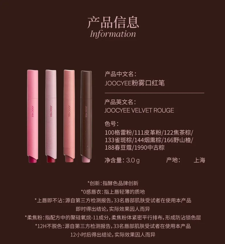 Inform when this item available Joochee Cosmetics Pink Mist Lipstick Pen Lipstick Matte Mist Flour Brown Autumn Winter Long-lasting Easy To Wear Beauty Makeup