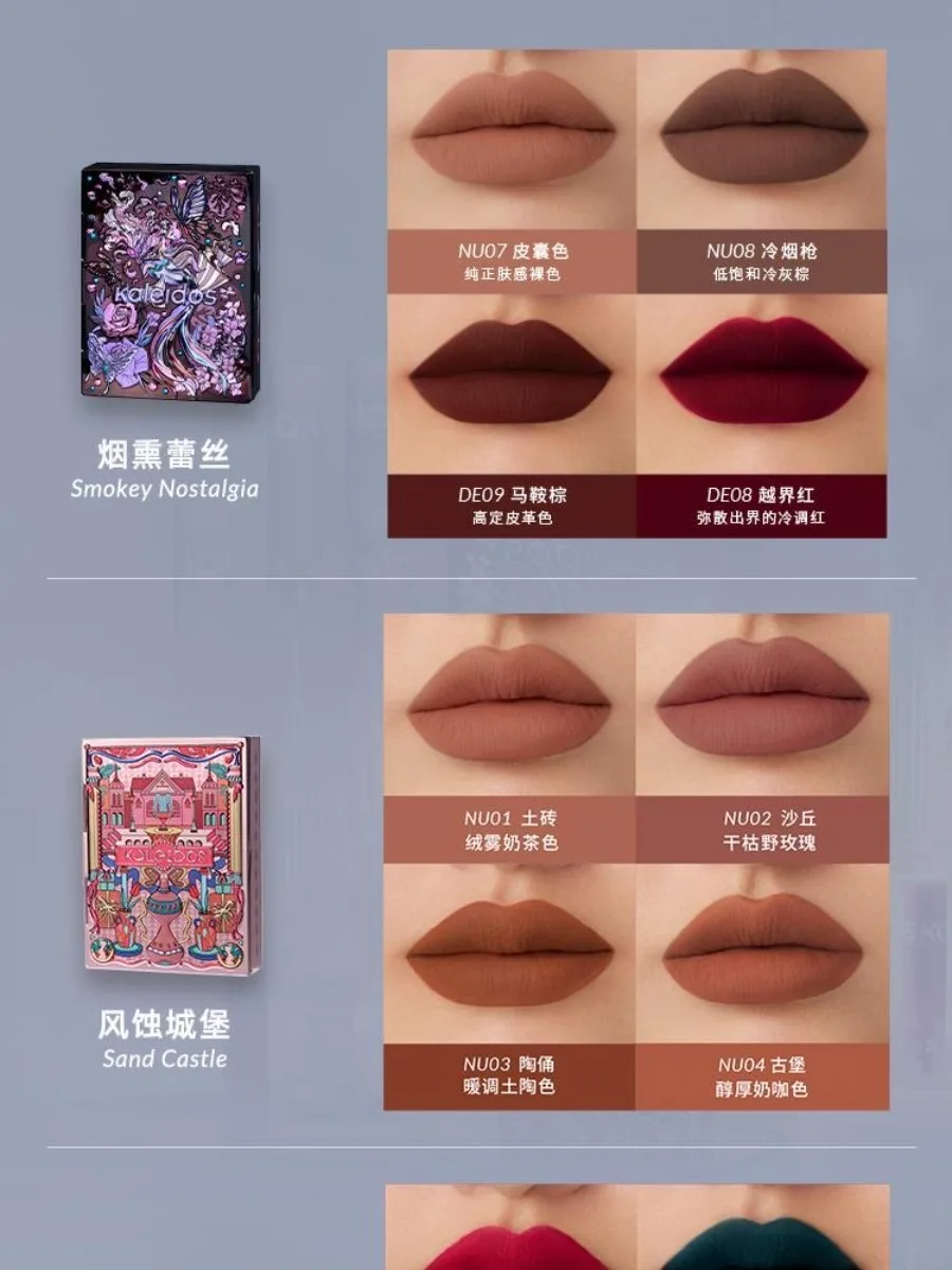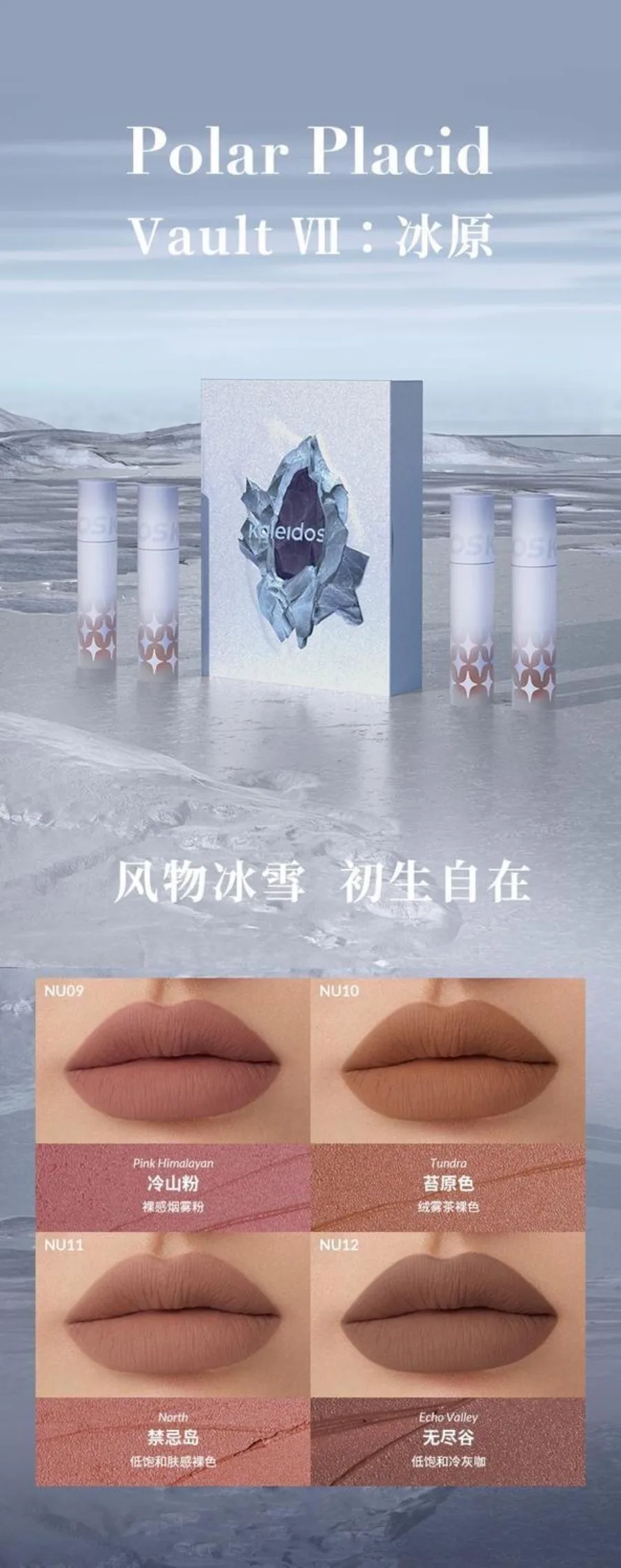 Kaleidos Lip Cream Set Matte Lipstick 4pcs Makeup Set Velvet Lip Mud Non Staying Cup Lip Glaze Lipgloss