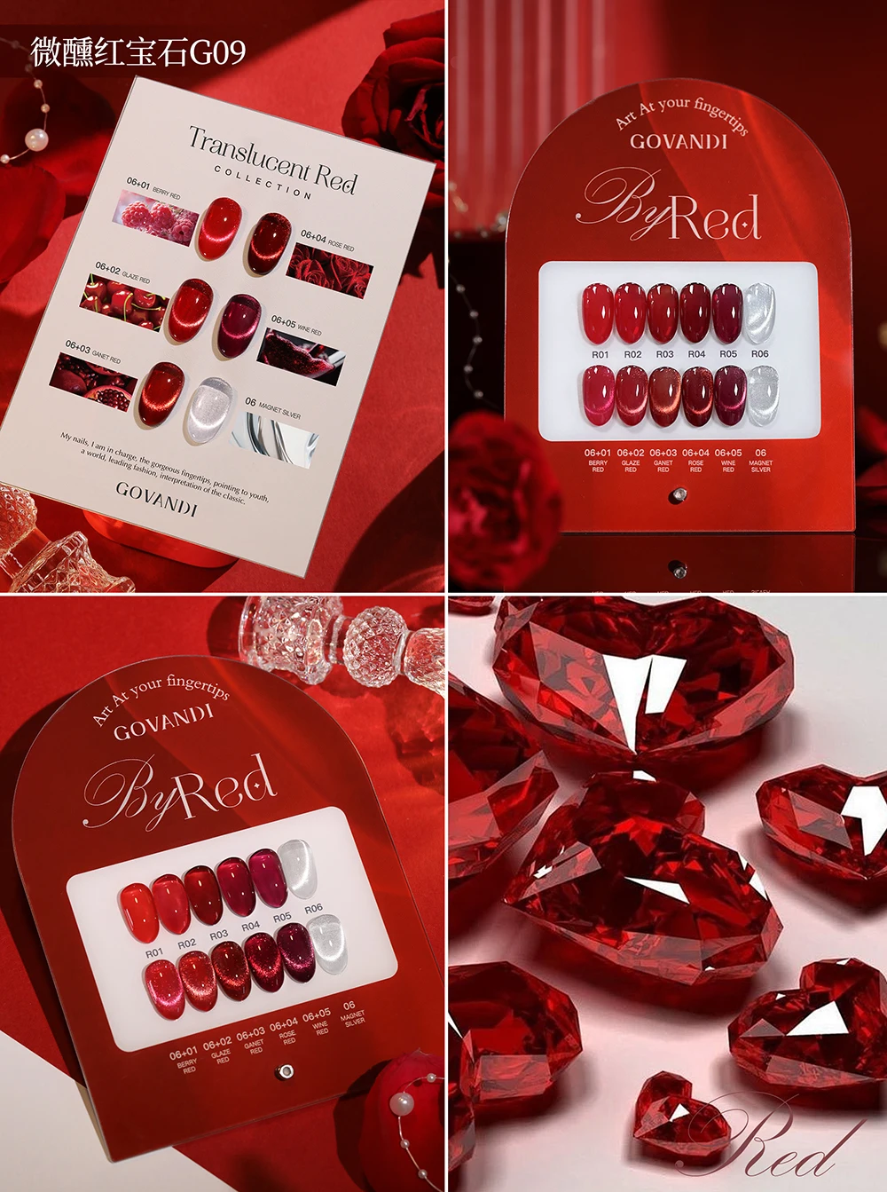 High-end Red 6pcs Hybrid Gel Polish Set MaCat Eyenicure Supplies Semi Permanent Nail Art 15ML LED UV Cat Eye Gel Nail Varnishes - G9 With Color Card
