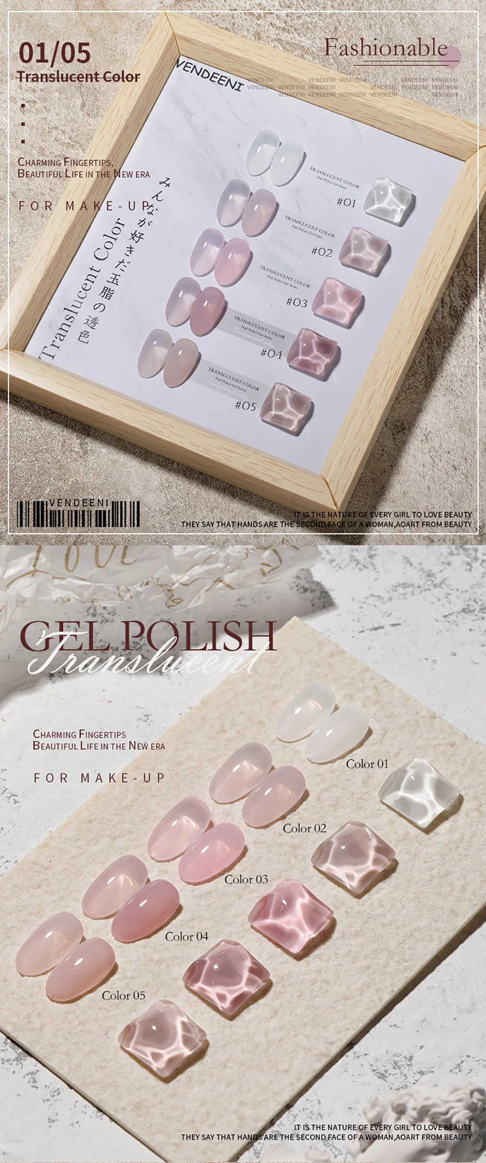 Vendeeni Nude Jelly UV Gel Nail Polish 40 Colors Translucent Semi Permanent Nail Art Lacquer Gel Pink Skin Tone Gel Varnish 15ml