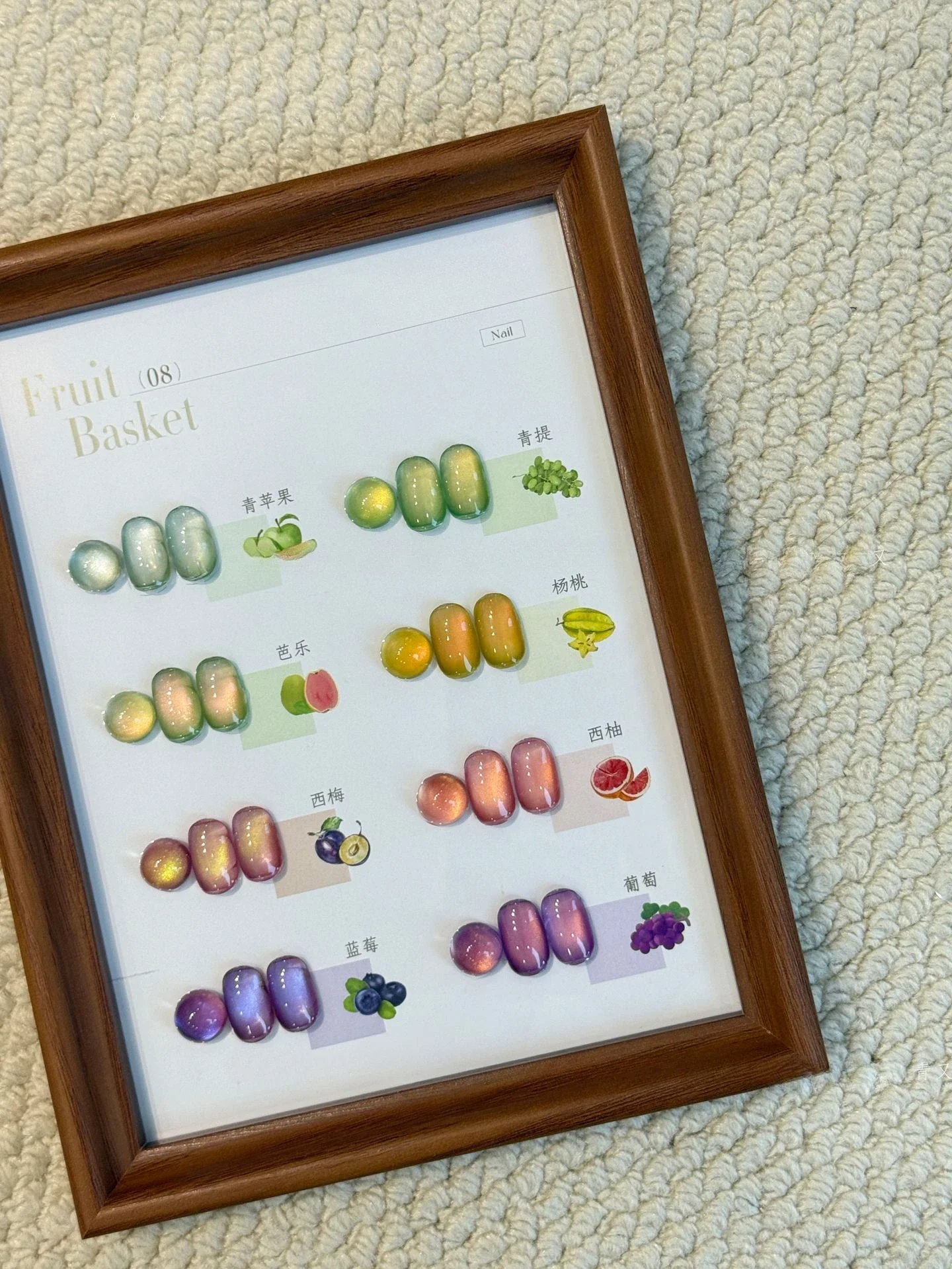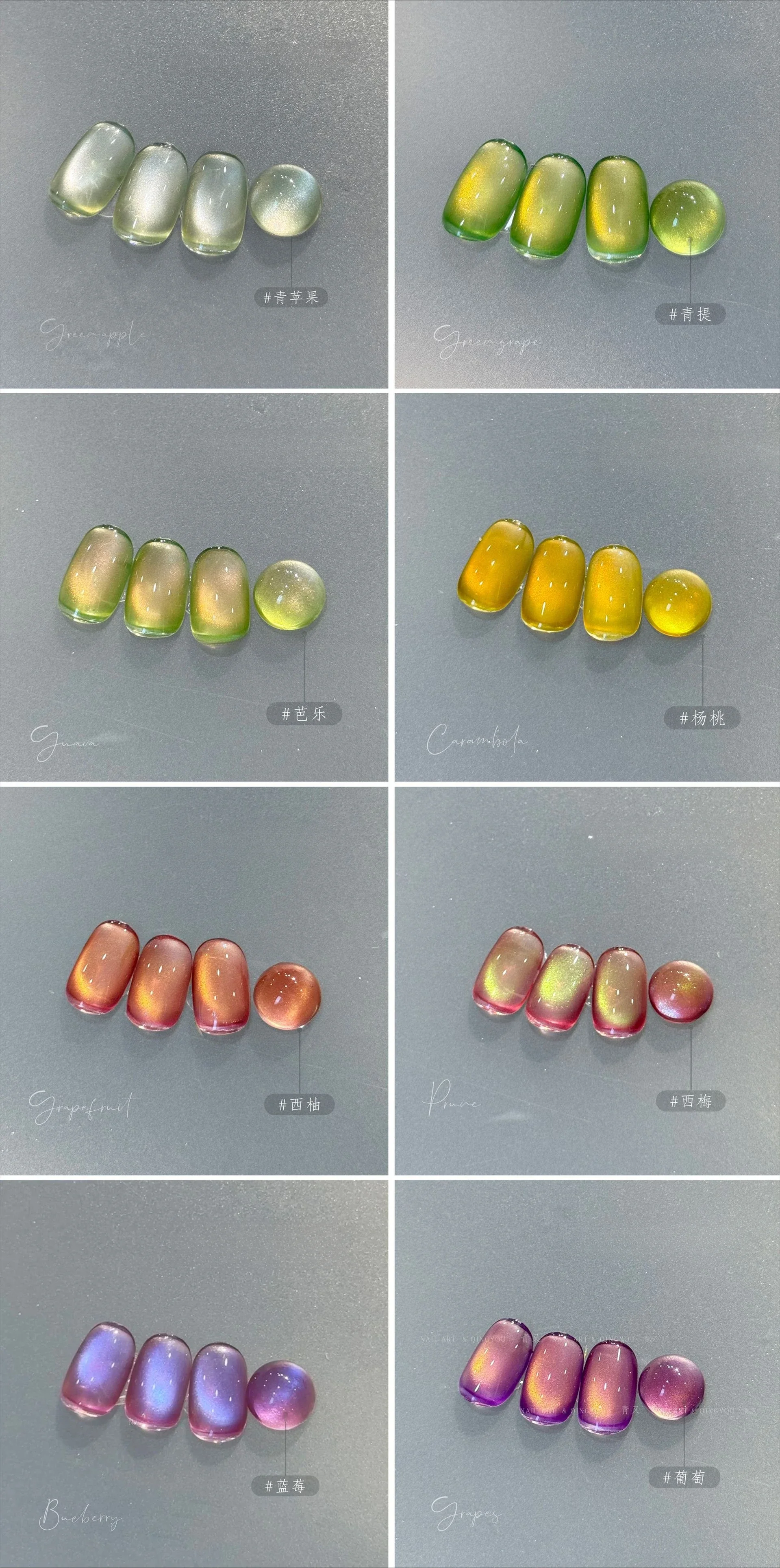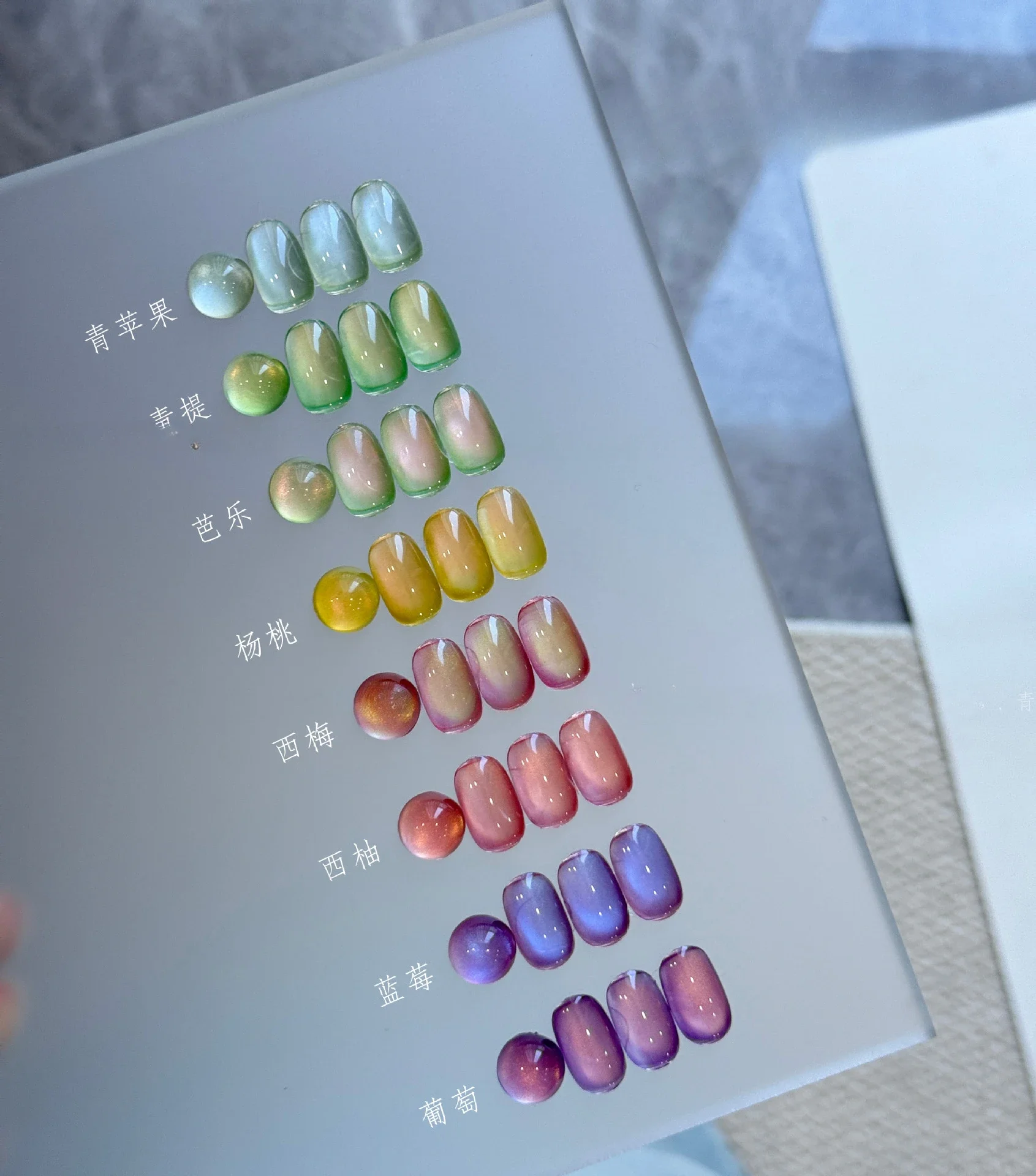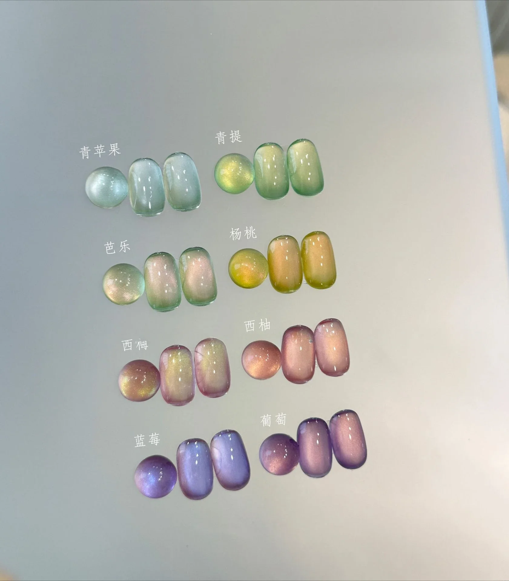 8Pcs 15ML Spring Hot Selling Fruit Cat Eye Nail Gel Polish 2025 New Whitening Guava Glass Beads Nail Polish Green Nails Art