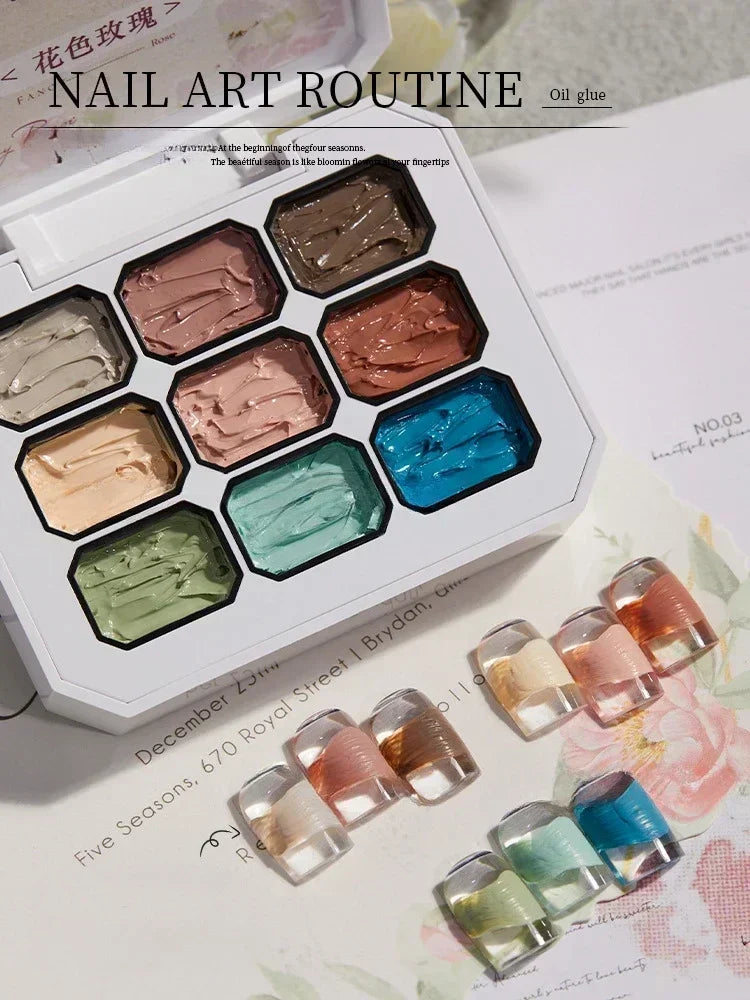 2.5gx9 Nail Drawing 3D Modeling Oil Paint Gel Polish No Wipe Glue Art Design DIY Flowers Painted Carved Nail Gel For Manicure