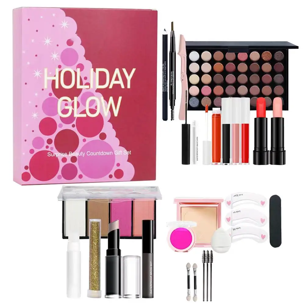 24pcs Christmas Makeup Lit Makeup Advent Calendar 2024 Beauty Christmas Countdown Calendar Eyebrown Pencil Eyeshadow Lipstick