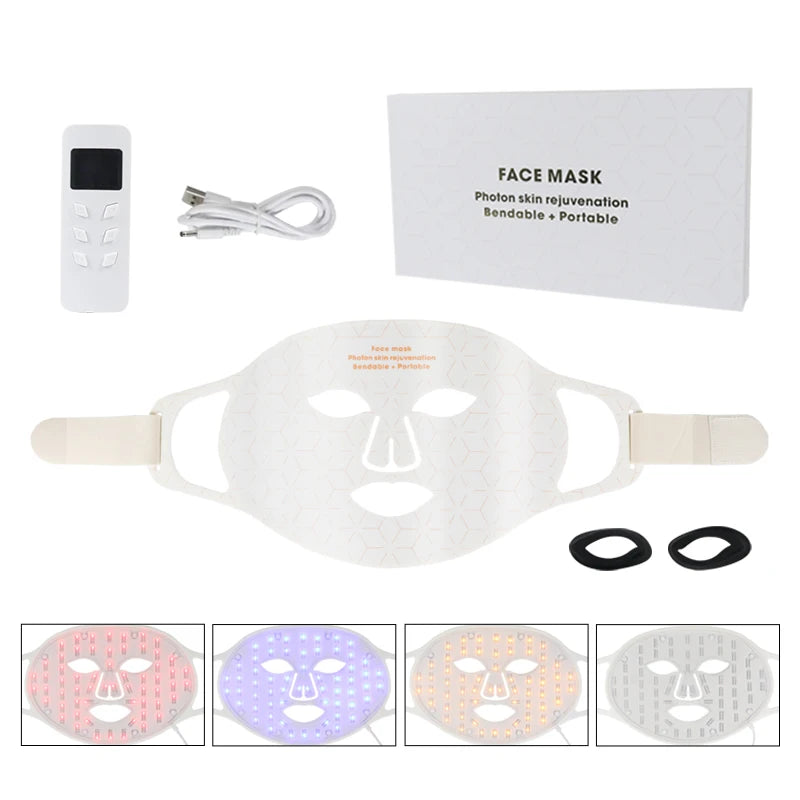 4 Colors LED Light Therapy Face Neck Mask Facial Skin Care Device 630nm 850nm Infrared Red Light Therapy Mask Skin Rejuvenation