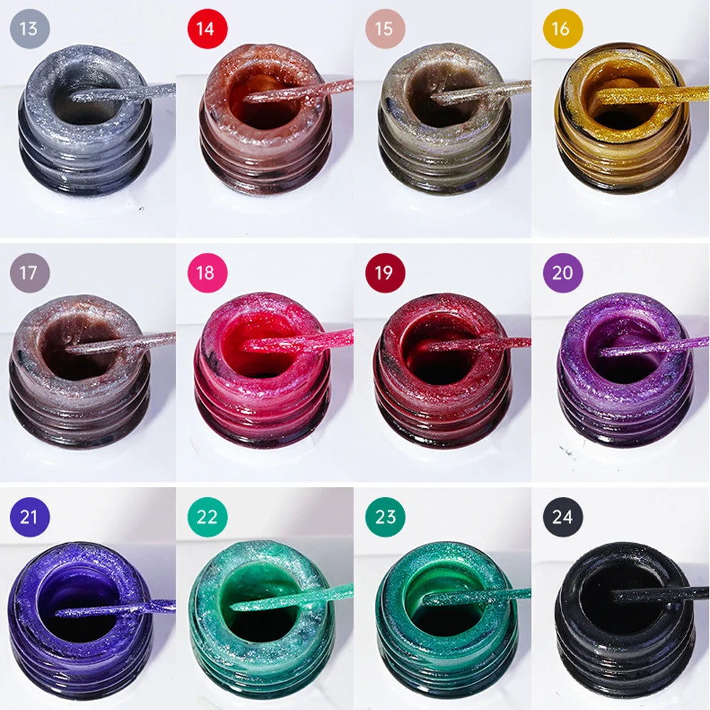 Neon Gel Nail Set Gel Pull Liner Glitter Nail Polish Kit UV/LED Fluorescent Color Gel DIY Manicure Painting Gel Nail Art Brushed