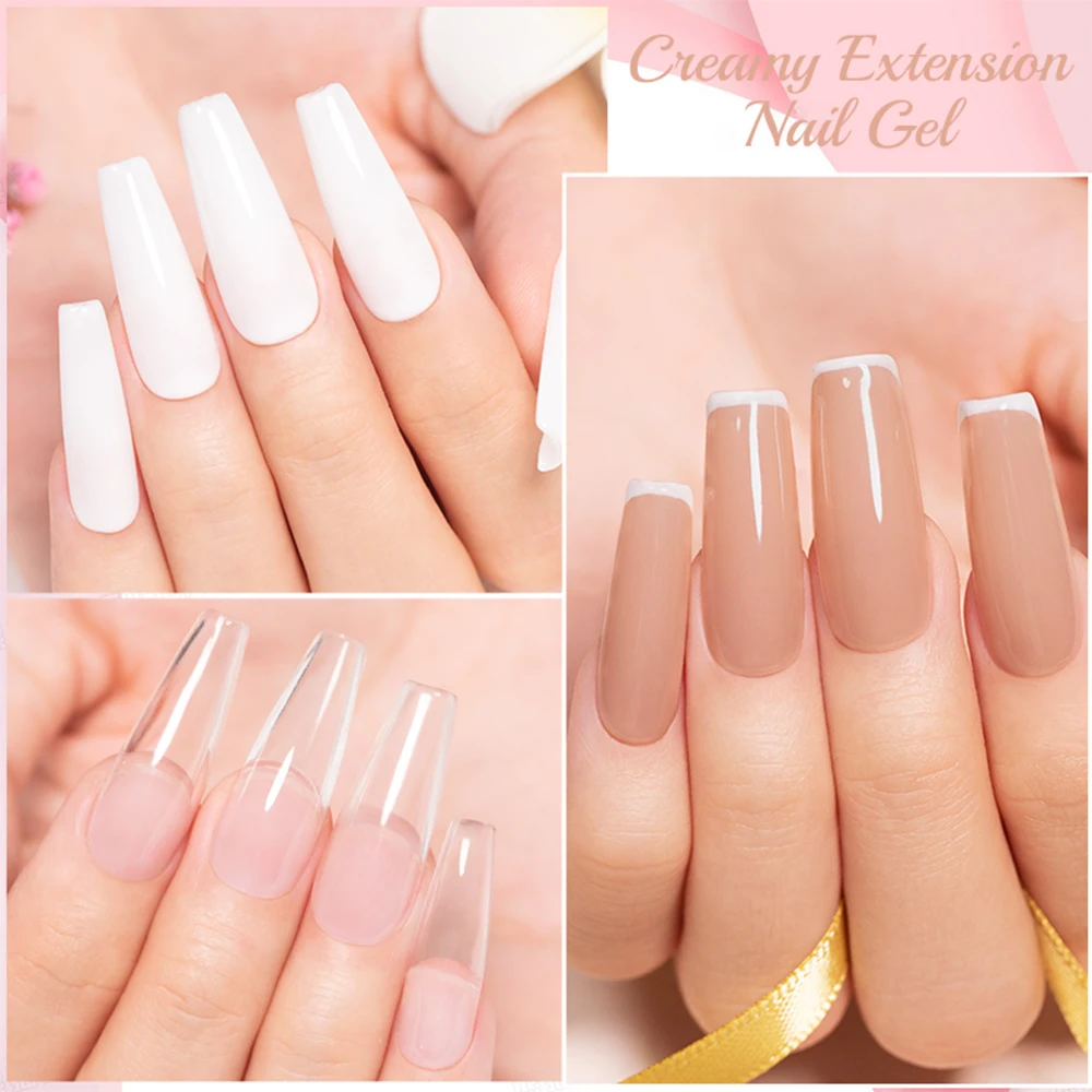 PUENTE 100g Creamy Extension Nail Gel Clear White Nude Pink Color Big Volume Builder Nail Gel Soak Off UV Gel For Nail Extension - 03
