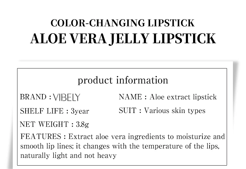 VIBELY Natural Mood Color Changing Lipstick Aloe Vera Moisturizing Jelly Lip Balm Long Lasting Makeup For Women Beauty Cosmetics